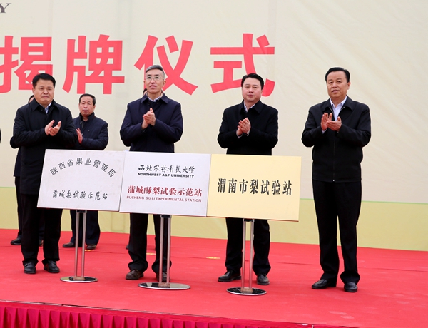 陕西省农业农村厅、果业局,渭南市科技局、果业局,蒲城县相关部门负责人及我校推广处、园艺学院相关专家参加揭牌仪式。