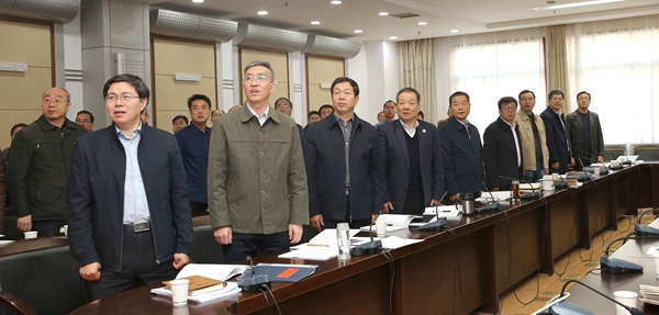 12月18日上午,校党委理论学习中心组在交流中心210会议室举行2018年第九次(扩大)会议,集体收看庆祝改革开放40周年大会直播盛况,聆听习近平总书记在大会上的重要讲话。校党委书记李兴旺,校长、校党委副书记吴普特及在校校党委理论学习中心组成员参加。