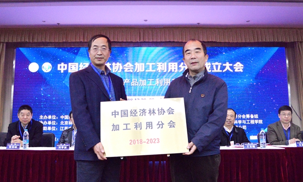 成立大会上,中国经济林协会秘书长宋慧刚研究员宣读中国经济林协会加工利用分会成立批复文,筹备组负责人、我校徐怀德教授介绍成立加工利用分会筹备情况及加工利用分会第一届理事会组成人员说明。中国经济林协会张志达会长给分会授牌并讲话,我校科研院副院长孙楠致辞。