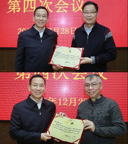 校党委常委、水保所党委书记闫祖书为来自香港的新增委员张建华、林汉明颁发聘书