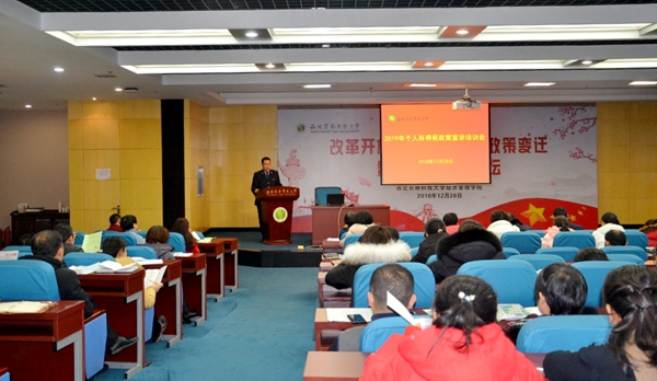 2019年1月1日起,个人所得税执行综合所得税和专项附加扣除。为了让我校广大教职工更好地掌握国家有关税收政策,28日下午,计财处组织举办了2019年个人所得税政策宣讲培训会,特邀请陕西省税务局个人所得税讲师团成员贺梅为科教人员宣传讲解。
