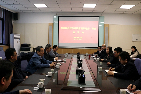 1月9日上午,学校在植保学院召开座谈会,庆祝黄丽丽教授主持的“苹果树腐烂病致灾机理及其防控关键技术研发与应用”项目荣获2018年度国家科学技术进步二等奖。校党委常务副书记赵忠,副校长钱永华、郑英宁,校党委常委、科研院常务副院长韦革宏出席座谈会。