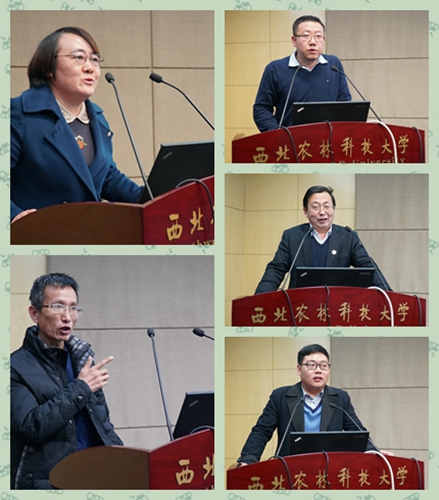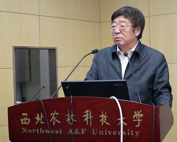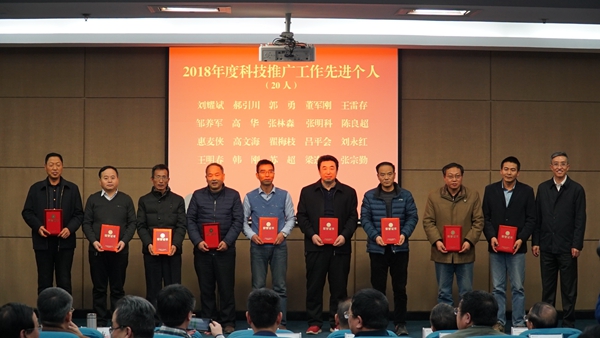 2018年度国家科技进步二等奖团队代表冯浩为大家介绍了项目实施及国家科技成果奖申报经验。推广处副处长张正新汇报了2018年学校科技推广工作。副处长杜世平宣读了2018年度我校推广工作先进集体、先进个人,并对先进进行了表彰。荣获我校先进集体的分别是:白水苹果试验示范站、洛川苹果试验示范站、眉县猕猴桃试验示范站、泾阳蔬菜试验示范站、黄淮小麦新品种示范园(荥阳小麦试验站)、富平现代农业试验示范站、陇县奶山羊试验示范基地、渭北核桃试验示范基地、宁夏海源肉牛试验示范基地、金昌(吴起)肉羊试验示范基地。获先进个人的包括:刘耀斌、郝引川、郭勇、董军刚、王雷存、邹养军、高 华、张林森、张明科、陈良超、惠麦侠、高文海、翟梅枝、吕平会、刘永红、王明春、韩刚、苏超、梁连友、张宗勤。洛川苹果试验示范站马锋旺、山阳核桃试验示范站翟梅枝、黄淮小麦示范园刘耀斌 、农学院郭东伟分别就科研、人才培养、推广、“一带一路”中亚农业示范园建设等工作做了经验介绍。