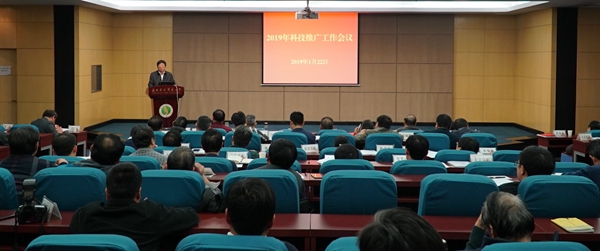 为了加快“升级版”大学推广模式构建,助力乡村振兴和学校“双一流”建设。1月22日下午, 我校2019年科技推广工作会议在国际交流中心举行,校长吴普特,副校长钱永华参加会议。会议由推广处处长王亚平主持。