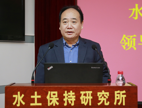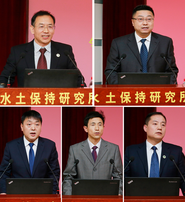 陈玉林宣读学校党委聘任决定:冯浩同志任水土保持研究所所长兼党委副书记,赵西宁、许明祥、王飞任副所长。