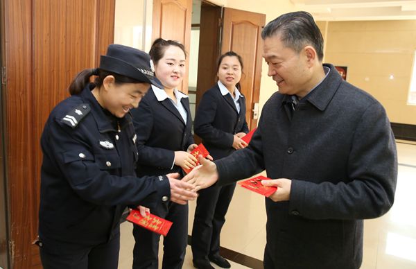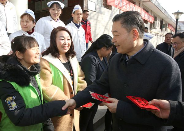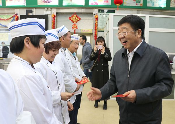每到一处,李兴旺、吴普特与仍坚守工作岗位的同志们亲切握手,询问他们的工作、家庭情况,对大家的辛勤付出表示衷心的感谢,对保卫、后勤、博览园及医院等部门一年来为师生提供的有效后勤保障予以充分肯定,鼓励大家心往一处想,劲往一处使,为师生提供更加优质的服务,为学校的发展贡献力量。