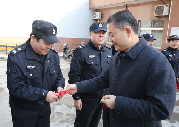 李兴旺在交流中心西门看望慰问中心区值班人员