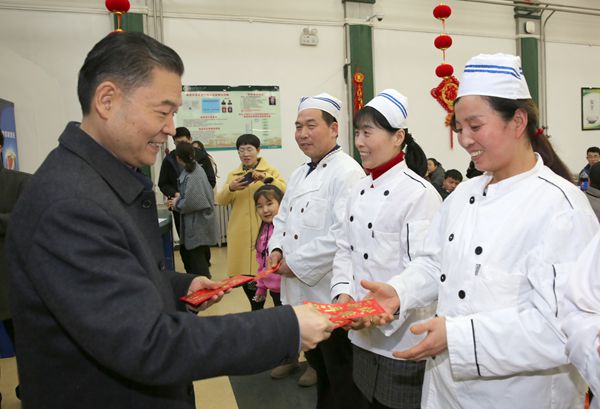 李兴旺在北校区东区第三餐厅看望慰问值班人员