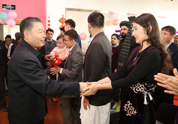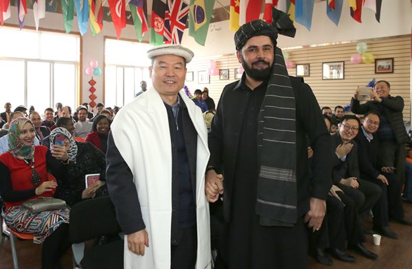 巴基斯坦留学生为李兴旺送上民族服饰