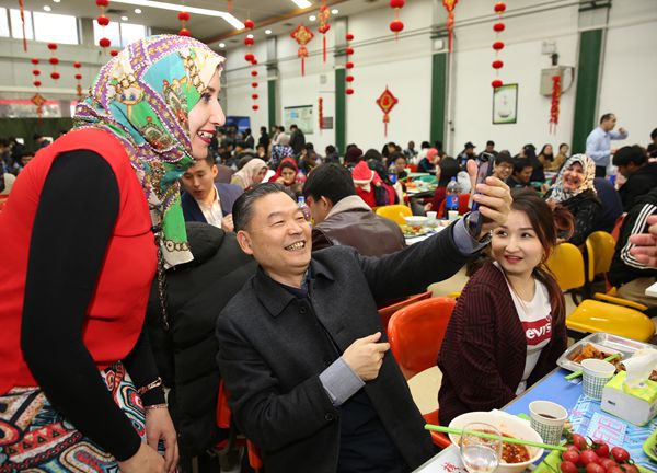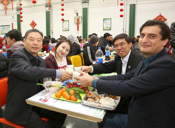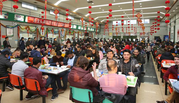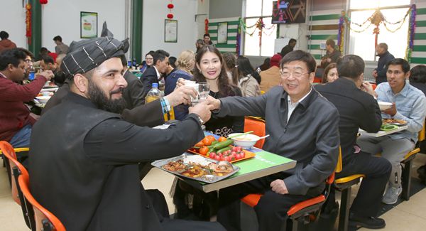 在南校区清真餐厅,李兴旺、吴普特与留校学生、外籍教师欢聚一堂,包饺子,发红包,送祝福,吃年夜饭。吴普特发表了新年贺辞,感谢大家2018年对学校发展所付出的辛劳,坚信在大家的共同努力下学校的明天一定更美好,并祝愿大家身体健康、学业有成、工作顺利、家庭和睦、万事如意。