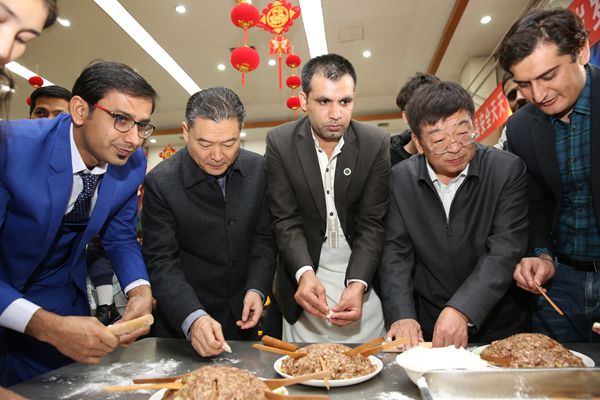 李兴旺、吴普特与留学生一起包饺子