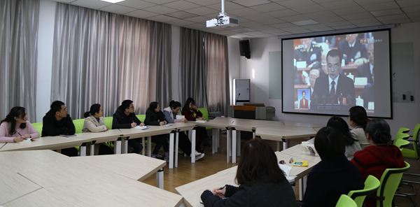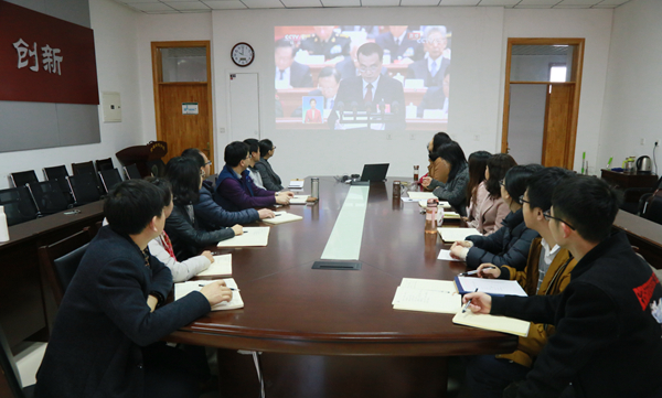 3月5日上午9时,葡萄酒学院组织师生在615会议室观看十三届全国人大二次会议开幕式,学习李克强总理2019年政府工作报告。