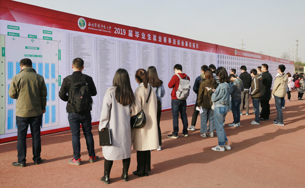 近年来,我校全面贯彻党中央、国务院关于高校毕业生就业创业工作的重要指示,将毕业生就业创业工作置于优先战略地位,主动对接“乡村振兴战略”“一带一路”“京津冀协同发展”“百万大学生留西安五年行动计划”等国家重大战略和地方人才战略对高层次人才的需求,不断开拓毕业生赴基层单位和重点领域就业的途径。自2019届毕业生就业工作启动以来,进校招聘的用人单位累计2130家,提供工作岗位10万余个。开展了名企名校行、江西高层次人才对接会、硕博士研究生专场、畜牧兽医等5场中型双选会。同时,为提高大学生求职竞争力,就业指导中心和各院系也开展了一系列的就业指导服务活动,其中,深入到每一个院系开展的“简历问诊”等就业指导类活动,吸引了千余名毕业生参加,活动反响良好。