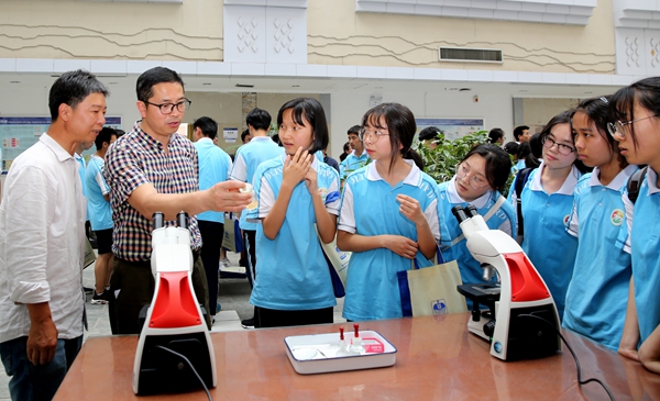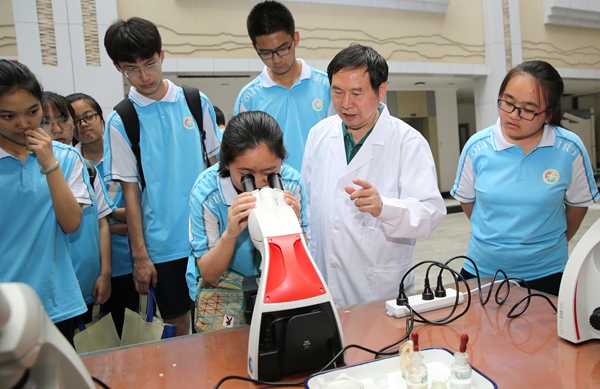 康振生院士指导中学生使用显微镜