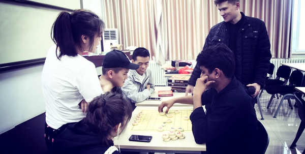 汉语老师首先结合历史背景从中国象棋的起源、发展等方面做了生动地介绍,就中国象棋棋子的摆法、意义、走法、规则做了详细地说明。在棋类爱好者协会同学们的指导下,大家迫不及待地开始体验中国象棋带来的乐趣。国际学生们通过亲身体验,竞技比赛,了解中国象棋这一传统的技艺,感受中国人的思维方式和价值观念。通过激烈的角逐,来自蒙古的学生博德荣获象棋比赛第一名,并向中国学生发出了挑战。他说:“我对中国象棋非常着迷,以棋会友,就是象棋的魅力所在。”棋类爱好者协会的中国学生朱梦伟说:“这是我第一次教外国人下象棋,很多国际学生太聪明了,能够在短时间内掌握象棋的规则,并且可以和中国学生对弈!他们都学的很认真,我们都乐在其中,很开心认识,了解他们。”