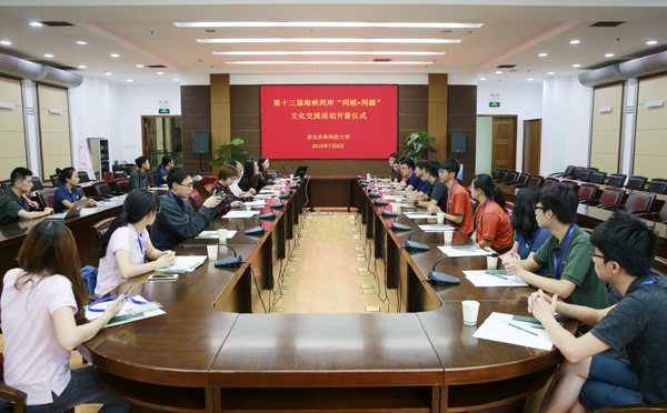 7月8日上午,由我校主办的第十三届海峡两岸“同根•同源”文化交流活动开营仪式在交流中心210会议室举行,来自台湾大学、嘉义大学和屏东科技大学的14位师生,港澳台办公室、教务处和学生志愿者参加开营仪式。副校长陈玉林代表学校与台湾高校交换了礼品,并向两岸学生代表授予营旗。