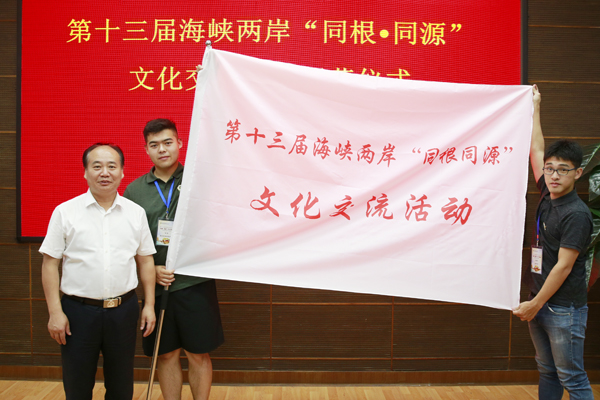 副校长陈玉林向两岸学生代表授旗