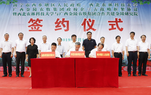 学校与西乡塘区人民政府、金陵农牧集团签订政校企三方战略框架协议