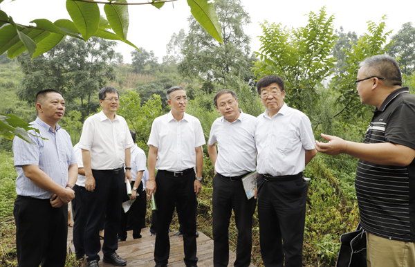 吴普特、钱永华一行在罗军陪同下考察河池金城江区同干万亩核桃示范基地