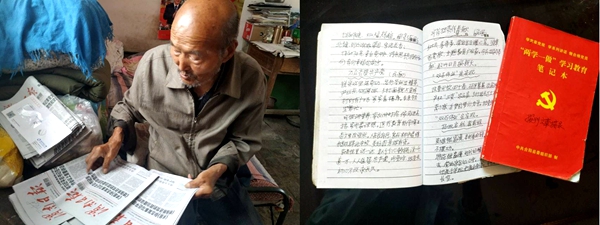 调研小组在与村支书的简单交谈中得知,该老人党龄43年,担任党小组组长40年,是一位有文化、口才好、腿脚好的老党员。随后调研小组就老人的党员经历以及他对脱贫攻坚的理解进行了访谈。