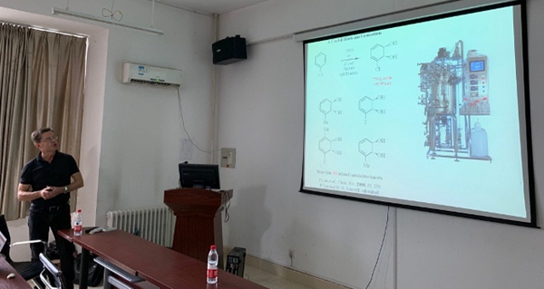 Banwell院士深入浅出、形象生动地向师生们展示了酶催化过程,并介绍了自己团队近几年在生物转化合成方面的研究,通过微生物酶催化,快速得到各类具有高立体选择性的合成砌块,从而完成一系列具有重要生理活性天然产物的全合成。交流环节中,Banwell院士不仅就大家感兴趣的学术问题和与会师生进行了深入交流,还跟大家分享了多年来从事科研工作的经验,他强调了将天然产物发现与合成相结合的重要性,要善于利用自然界中存在的酶催化生物工厂,从大自然中寻找合成方法。最后,他鼓励大家在科研的道路上善于思考、善于发现、无畏失败、坚持探索。