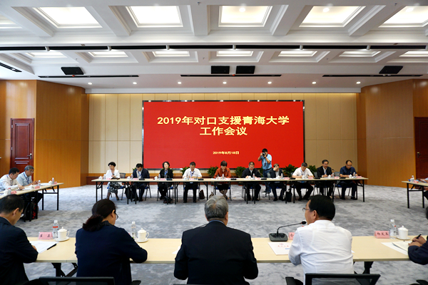 会上,俞红贤做了对口支援工作汇报,介绍了对口支援工作的基本情况、对口支援19年来青海大学建设发展所取得的成就,总结了2018—2019年度对口支援工作的开展情况,并就党建思政、一流学科、部省合建、医学教育等工作提出了工作请求。清华大学党委书记陈旭代表对口支援高校表态发言,表示下一步援建工作要持续开拓创新、务实推进,在提高人才培养质量、提升重点学科实力、服务青海省优势特色行业需求等方面凝聚力量、取得更多实效。青海省副省长刘涛向各支援高校对青海大学发展给予的大力支持表示感谢,希望青海大学珍惜机遇,积极作为,完善对口支援长效机制,在更多领域实现更广泛、更深入的合作。各对口支援高校,以及新加入对口支援“团队”的北京化工大学、上海交通大学分别发言,并分别与青海大学签订了2019—2020年度对口支援协议。