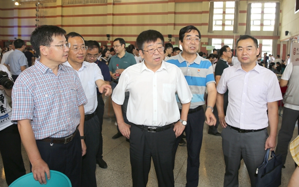 在北校区绣山活动中心,吴普特听取了新生入学报到有关工作情况介绍,并来到学院新生入学报到现场,看望了工作人员,详细了解录取分数、第一志愿、报到率等新生入学报到情况。看到不少学院结合各自特色开展了许多富有创意的迎新工作,吴普特对大家的辛勤付出表示肯定,希望大家再接再厉,圆满完成新生入学报到工作。