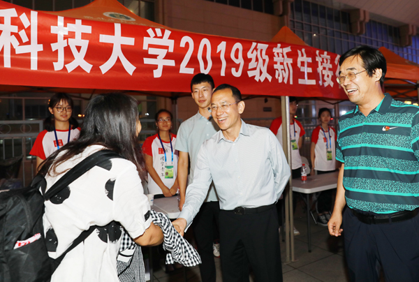 8月24日上午,校长吴普特到新生接待点和新生入学报到现场看望2019级新生,检查了解新生入学报到工作情况,并到北校区八号教学楼和南校区幼儿园检查了解暑期维修改造工作情况。