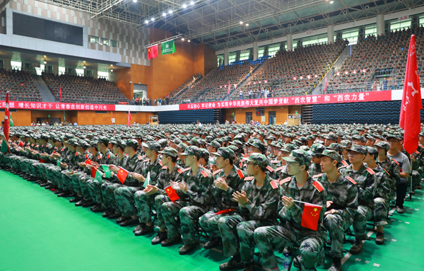 8月26日上午, 2019级本科生开学典礼暨军训动员大会在我校体育馆隆重举行。