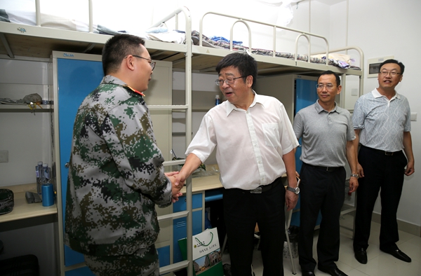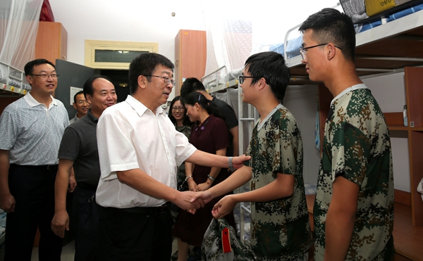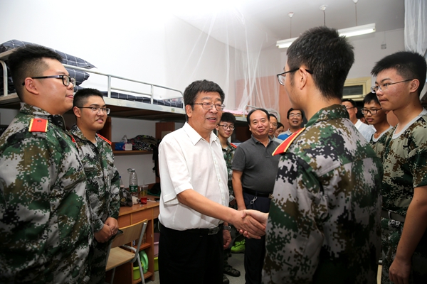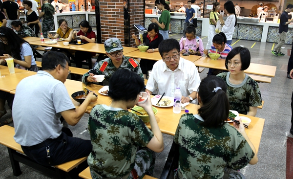8月25日晚6点,刚刚结束了校领导班子“不忘初心,牢记使命”暑期专题读书班学习后,校长吴普特与副校长陈玉林、郑英宁以及校党委副书记闫祖书等一行,驱车前往北校区学生食堂,与新生共进晚餐,之后又分别到园艺学院304宿舍、信工学院528宿舍、外语系及创新学院学生宿舍,看望部分新生、双胞胎姐妹和新生家长。