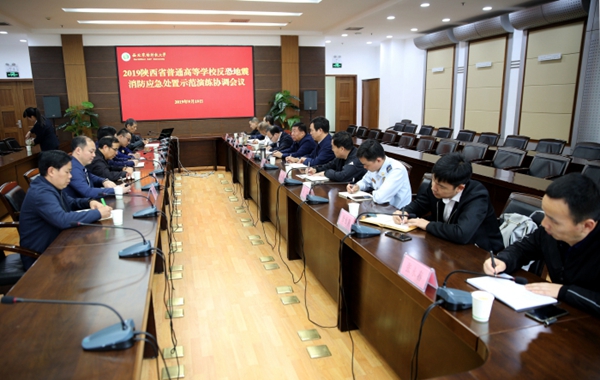 9月19日,全省高校反恐地震火灾应急处置示范演练协调会在我校召开,根据会商,2019年全省高校反恐地震火灾应急处置示范演练将于11月2—3日在我校举行。省委教育工委委员张玉明、校党委副书记徐养福出席会议。省委教育工委稳定办副主任陈国栋、省公安厅反恐总队总队长申军明、省消防救援总队副参谋长刘铭、省地震局应急救援处副处长徐仙鹏、省应急管理厅救援协调和预案管理局主任陈亚鹏和我校有关部门及杨凌示范区相关部门负责人参加协调会。