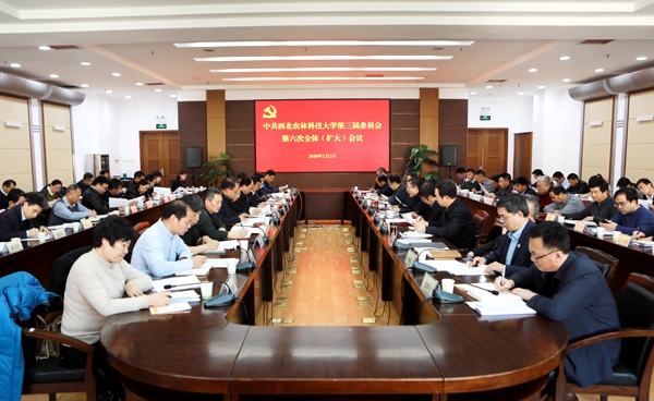 会议听取了校党委书记李兴旺代表常委会所做的工作报告,审议通过了《西北农林科技大学章程》(修订稿)和学校《2020年工作要点》以及《2020年党建工作计划》。党委副书记、校长吴普特主持会议。校党委副书记吕卫东汇报《章程》修订情况,副校长冷畅俭解读《2020年工作要点》和《2020年党建工作计划》。