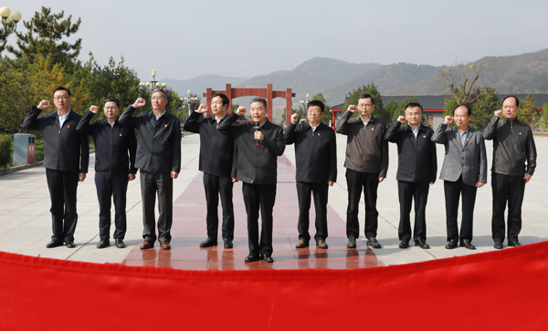 学校领导班子成员在马栏革命纪念碑前重温入党誓词