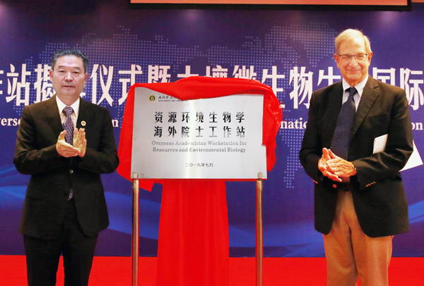 7月2日,西北农林科技大学资源环境生物学海外院士工作站在我校揭牌,这也是我校设立的首个海外院士工作站。工作站由海外院士、国外著名大学杰出教授詹姆士•迪杰领衔,同时担任我校“旱区土壤微生物生态和土地可持续生产力交叉学科研究中心”主任。校党委书记李兴旺和詹姆士•迪杰教授为资源环境生物学海外院士工作站揭牌,校长吴普特向詹姆士•迪杰教授颁发“旱区土壤微生物生态和土地可持续生产力交叉学科研究中心”主任聘书。