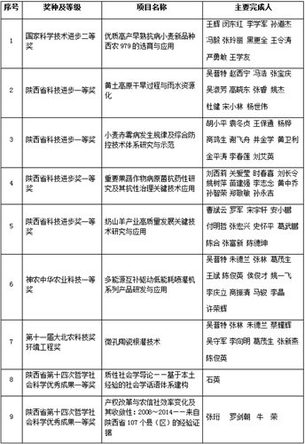 1.荣获9项重大科研成果奖。1项成果获国家科技进步二等奖,4项成果有望获陕西省科学技术一等奖(公示期已经结束),1项成果获神农中华农业科技一等奖,1项成果获大北农环境工程奖。2项成果获陕西省第十四届哲学社会科学优秀成果一等奖,创历史新高。
