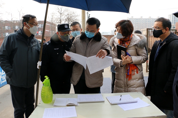 2月1日上午,副校长马建华、郑英宁与示范区教育局负责同志一起,对我校南北校区及家属区进行了实地走访与检查,叮嘱他们在非常时期严格按照防控要求,严防死守,真正做到守好“责任田”,护好“一校人”。