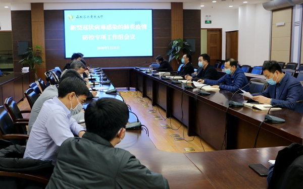 校领导徐养福、马建华、郑英宁、闫祖书参加会议。会议传达了杨凌示范区应对新型冠状病毒感染肺炎疫情工作领导小组办公室《关于进一步细化新型冠状病毒感染的肺炎疫情联防联控工作措施的函》,听取了后勤处、校医院、学工部、研工部、保卫处、人事处、离退处、教务处、国际学院等单位在当前疫情非常时期所开展的工作和存在的问题,对进一步细化工作、提升举措、做好防控进行了部署安排。会议决定,从1月31日起,每天下午工作组召开碰头会,通报有关情况,随时做好部署,应对突发状况。