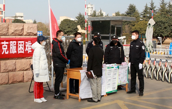 从2月3日起,我校南北校区及相关家属区大门口,多了一群佩戴党徽的“岗哨”,他们就是学校机关的党员干部们。为贯彻落实习近平总书记对防控新型冠状病毒感染的肺炎疫情做出的重要指示精神和上级有关部门的工作部署,充分发挥基层党组织的战斗堡垒作用,以及广大党员和领导干部的先锋模范作用,校党委研究决定,组织机关党委党员干部参加学校疫情防控一线重点部位的门禁管理工作。