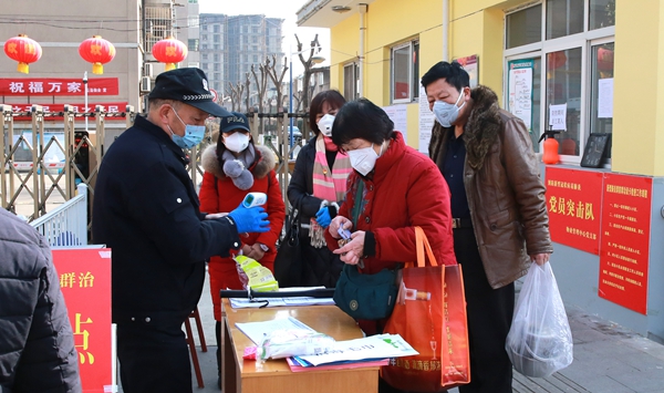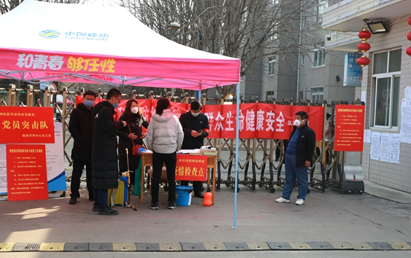 党员干部们在北校东南区家属区门口协助值守