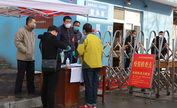 党员干部们在原植物所家属区门口协助值守