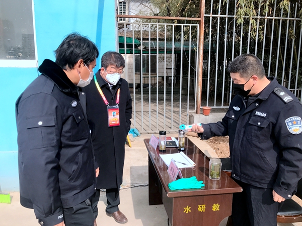 吴普特在水保所办公区门口值守点检查了解体温监测情况