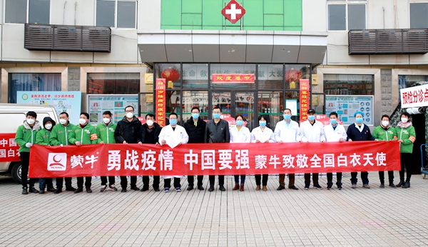 副校长马建华及校医院医护人员与蒙牛杨凌总经销经理夏顺团及员工等共同为抗“疫”加油