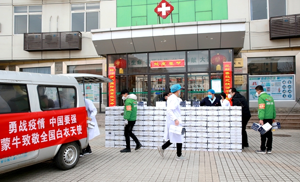 “勇战疫情,中国要强。”2月8日下午,一阵雄浑的呐喊声在校医院大楼前响起。蒙牛乳业杨凌总经销—杨凌凌杰商贸有限公司向我校捐赠纯牛奶的仪式正在这里举行,一提提纯牛奶摆放得整整齐齐,副校长马建华、校医院医护人员等与蒙牛乳业杨凌总经销的员工们共同为国家阻击新冠病毒呐喊加油。此次蒙牛乳业杨凌总经销共向我校捐赠三个类别的纯牛奶829提,出厂价3.8万余元。
