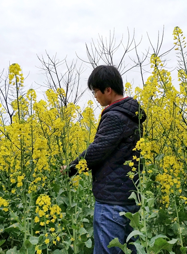 通过不断追踪后期低温影响油菜花抗倒伏、抗病虫害能力,秦梦凡发现两个现象,一是当地的油菜品种优良,冷害发生时,处于蕾薹期的材料表现良好,躲避了此次低温胁迫。二是处于花期的材料,几乎所有植株角果都未表现出严重的冷害现象,空籽粒少,但是二次分枝花蕾部分冻死,且约50%的植株茎杆下部有冻裂现象,会大大增加核盘菌入侵的几率。于是,秦梦凡立即来到当地村委会,提出问题解决办法,建议及时喷施多菌灵等抗病菌农药,通过选择晚花品种来躲避寒潮,预防花旗低温胁迫,同时要做好病情监测预警。“这次抗疫期间,我们村的‘油菜’博士真是帮了我们大忙了!”村委会主任感慨道。