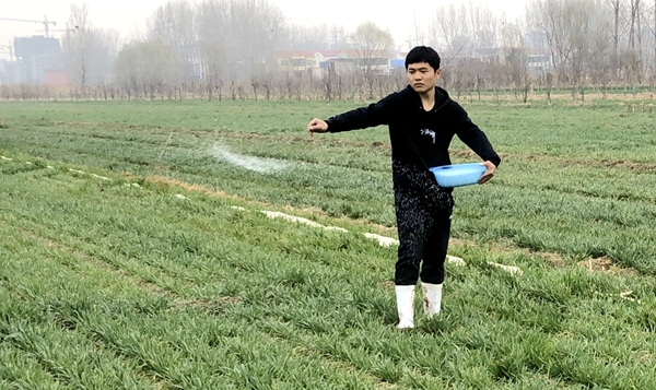 此时正值小麦返青-起身-拔节期,作物学硕士牛洪壮、晁漫宁以自己的实际性动感,成为春天里的“小麦”卫士。