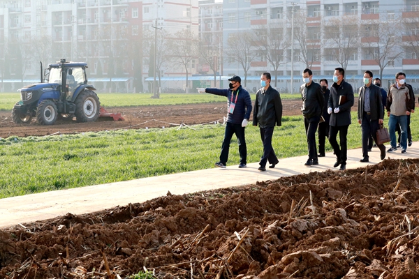 李兴旺先后来到北校区校园基地、农作一站基地、曹新庄基地,检查疫情防控及春管工作,听取了场站管理中心及曹新庄农场负责人的工作汇报,与正在试验田里工作的张睿、张正茂、郭东伟、韩德俊、孙道杰、闵东红、王保通、郭军等专家教授交谈,了解他们的科研基本情况和目前所做工作。