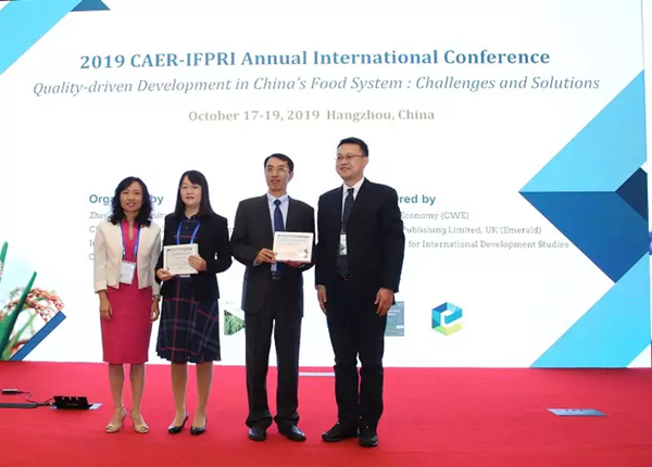 10月17日至19日,由中国农业大学、国际食物政策研究所与浙江大学中国农村发展研究院联合主办的“第十一届CAER-IFPRI国际学术年会”在杭州召开。会议期间,经管学院闫小欢副教授和霍学喜教授合作的论文“Drivers of household entry and intensity in land rental market in rural China:Evidence from North Henan Province”获得2016-2018年度CAER最佳论文引用奖。
