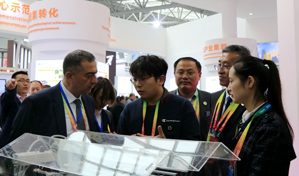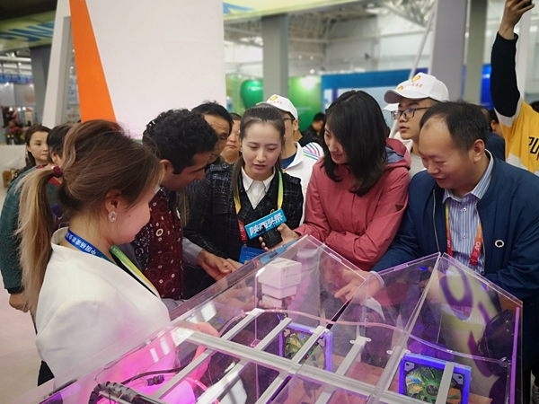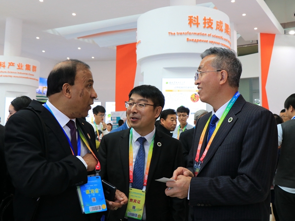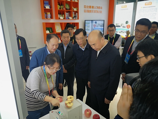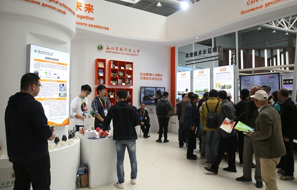 此次展会,我校展出了160项最新成果,其中新品种79项,新技术81项。我校展品获得了多方关注,展区内前来寻经问宝的地方政府、企业和群众摩肩擦踵。作物新品种展区苹果、猕猴桃、马铃薯、花椒、小麦等展品吸引众多群众咨询、拍照并索要成果资料。智慧农业新技术装备展区的立体光环境优化调控装备、设施环境智能调控装备、智慧果园物联网服务装备、苹果内部品质无损检测仪等一批科技含量高市场前景好的成果,吸引了包括上合组织和“一带一路”沿线国家代表的多方关注,格鲁吉亚农业部部长达内利亚,澳大利亚技术科学与工程院院士、西澳大学农业研究院院长Kadambot H M Siddique均详细询问了这些技术成果。