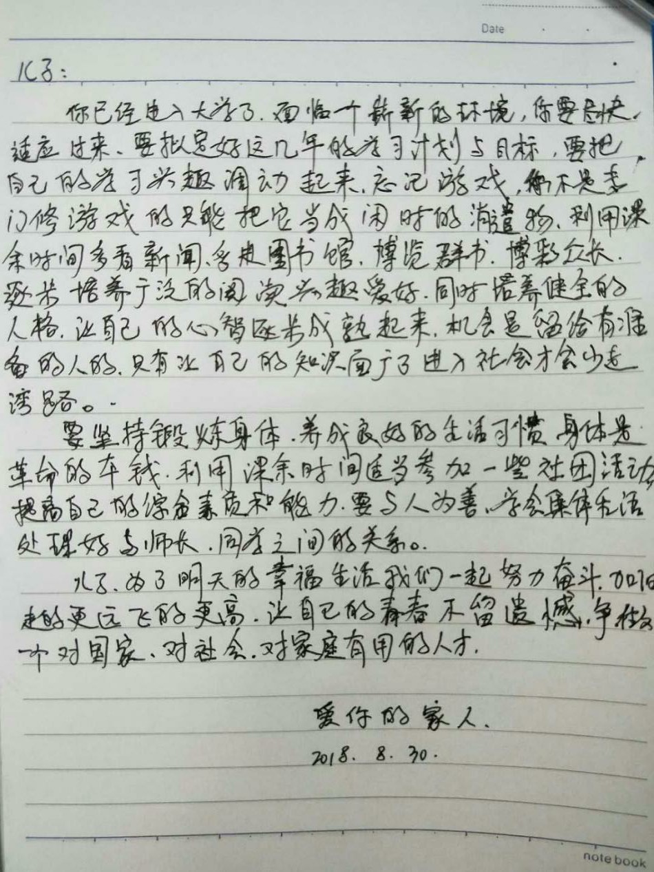 那日,你扛着行李走在我面前,才发现原来你并不高大;那日,你坐上车捂脸摇上车窗,才发现耳根突然清静;那日,你们把我送入西农,才发现思念可以那么浓,说不出的爱那么深;那日,军训的太阳照的我头晕目眩,我竟看到你在眼前,一如从前模样。见字安好! ——西农学子