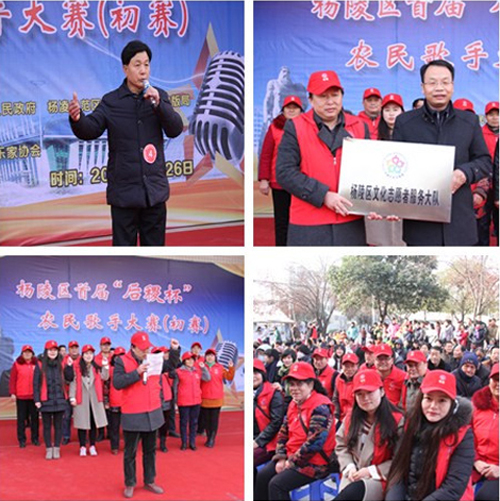 为贯彻落实习近平总书记文艺工作座谈会讲话精神,展现当代农民精神风貌;弘扬农耕文化,凸显杨凌农科城特色,为农科城品牌增添光辉,营造良好的文化氛围,11月26日,由中共杨凌区委、杨凌区人民政府、杨凌示范区文化广电新闻出版总局主办,杨凌区文化体育旅游局承办,杨凌区文化馆、杨凌区音乐家协会、西北农林科技大学人文社会发展学院实践部协办的杨凌区文化馆志愿服务大队挂牌仪式暨首届“后稷杯”农民歌手大赛在杨凌区文化馆举行。